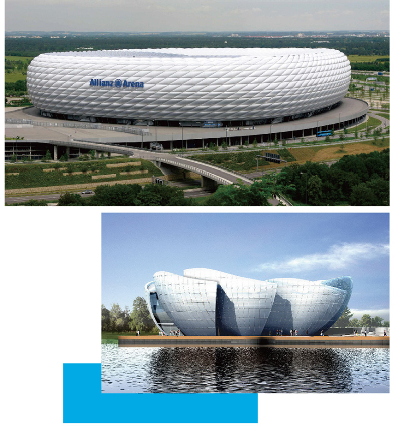 建筑物外墻、梁柱、陽臺、雨棚機場、車站、醫(yī)院會議廳、歌劇院、體育場館、接待大堂等等高層建筑物。